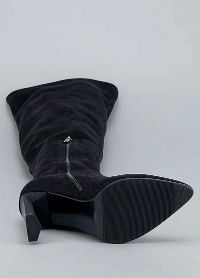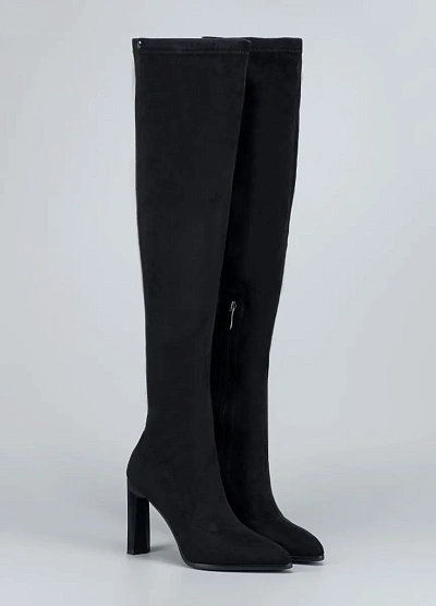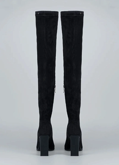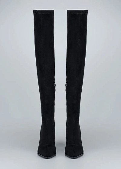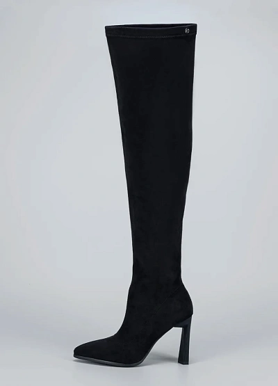 • Эффектные ботфорты  Keys с зауженным носом и высоким каблуком создают выразительный и женственный силуэт. Модель выполнена из эластичного материала, плотно облегающего ногу, и идеально подходит для образов с юбками и платьями. Высокая посадка визуально удлиняет ноги.