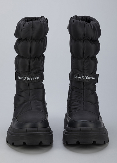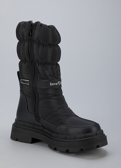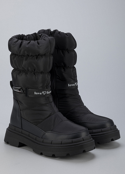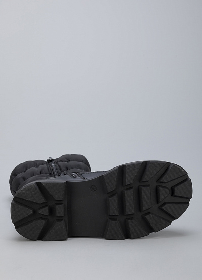 • Женские дутыши из экокожи и текстиля от бренда Finn Line. Закругленный носок. Боковая молния. Застежка на молнии вокруг голени дополнена логотипом. Петли для подтягивания сзади. Массивная рифленая подошва.