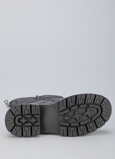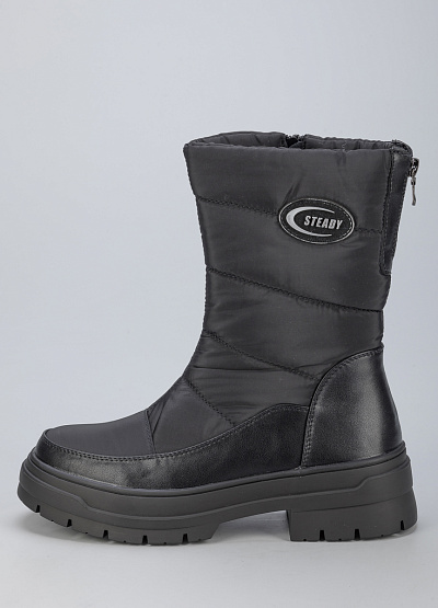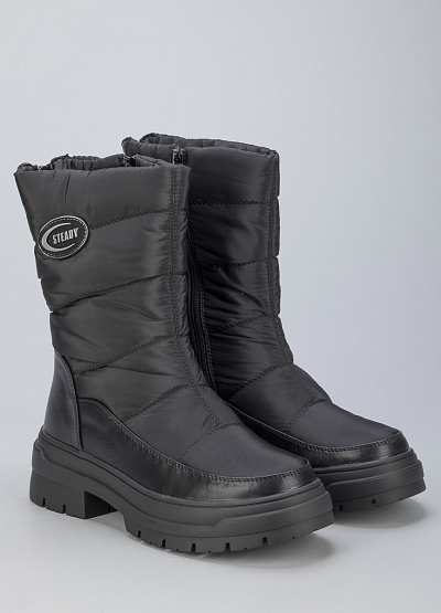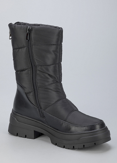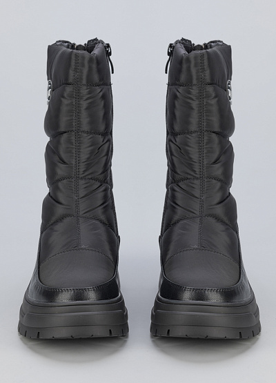 • Женские дутыши из экокожи и текстиля от бренда Finn Line. Закругленный носок. Боковая молния. Застежка на молнию сзади. Логотип сбоку. Массивная рифленая подошва.