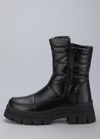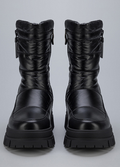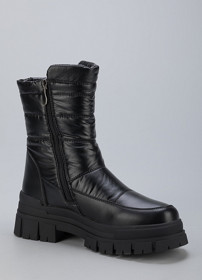 • Женские дутыши из экокожи и текстиля от бренда Finn Line. Закругленный носок. Замок на молнию по бокам. Массивная рифленая подошва.
