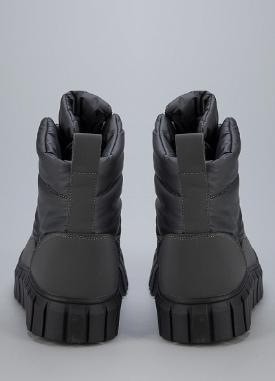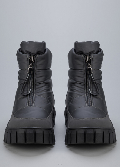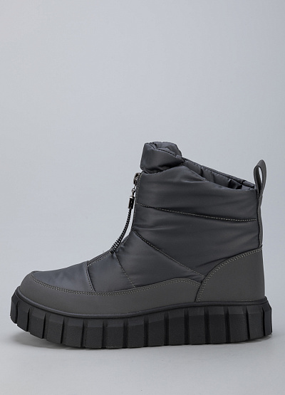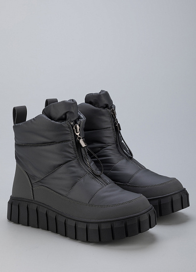 • Женские дутыши из экокожи и текстиля от бренда Finn Line. Закругленный носок. Мыс оформлен рельефным швом. Застежка на молнии с брелком по центру. Петли для подтягивания сзади. Массивная рифленая подошва.