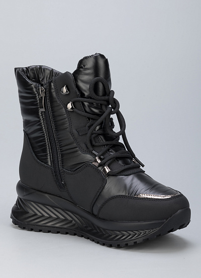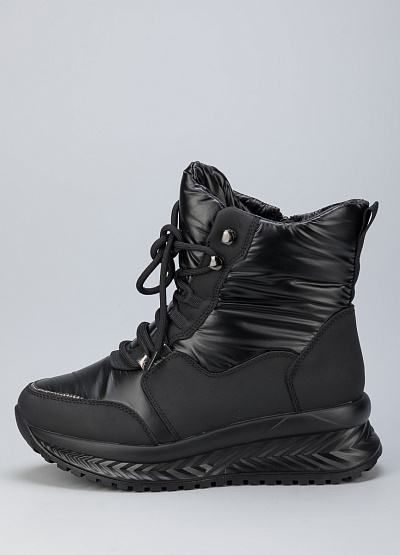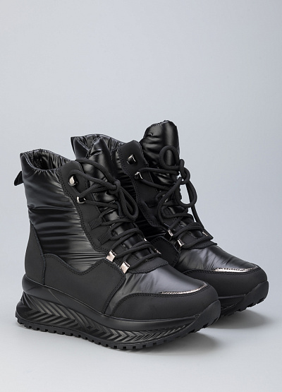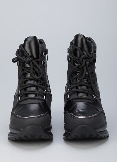 • Женские дутыши из экокожи и текстиля от бренда Finn Line. Открытая шнуровка в тон. Закругленный носок. Петли для подтягивания сзади. Широкая рифленая подошва.