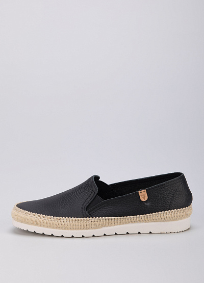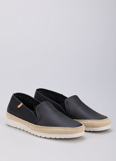 • Женские эспадрильи черного цвета от испанского бренда Verbenas. Модель выполнена из натуральной кожи. Эластичная вставка на подъеме. Плоская рифленая подошва.