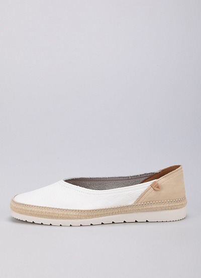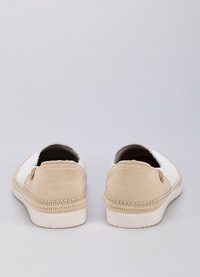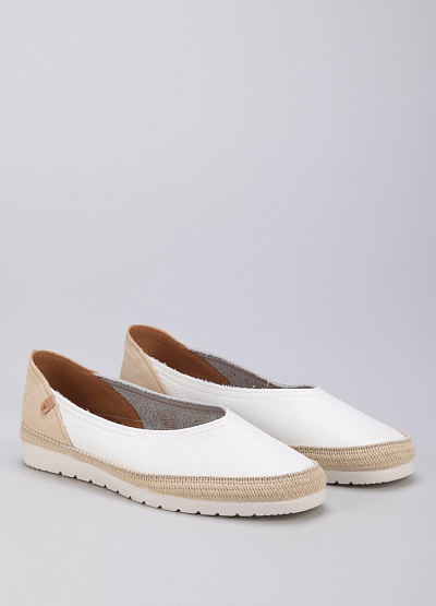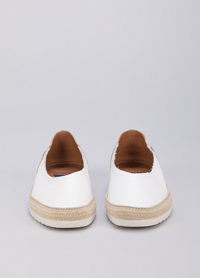 • Женские эспадрильи белого цвета от испанского бренда Verbenas. Модель выполнена из натуральной кожи. Плоская рифленая подошва.