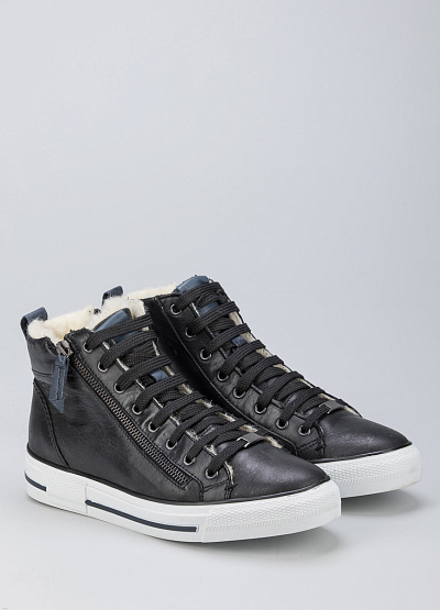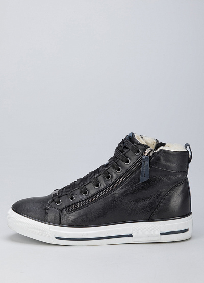 • Женские кеды из натуральной кожи от бренда Creator. Модель с высокой голенью. Закругленный носок. Открытая шнуровка в тон. Боковой замок. Плоская подошва.