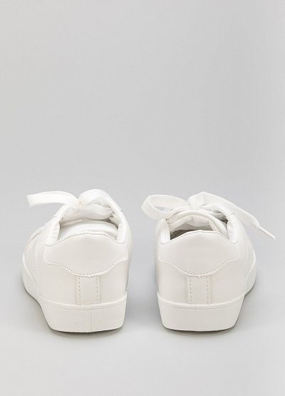 • Женские кеды из экокожи от бренда Glamour. Открытая шнуровка в тон. Боковая часть украшена принтом. Закругленный носок. Плоская подошва.