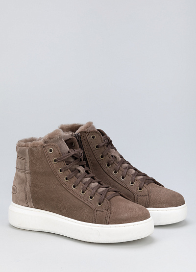 • Женские кеды из натуральной замши от бренда Inwood. Открытая шнуровка в тон. Закругленный носок. Боковая молния. Плоская подошва.