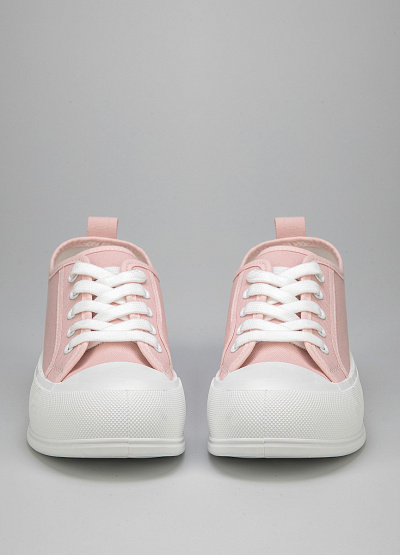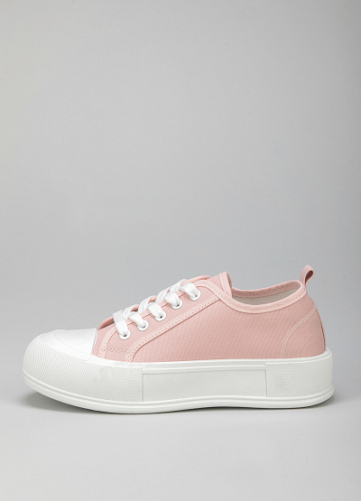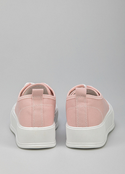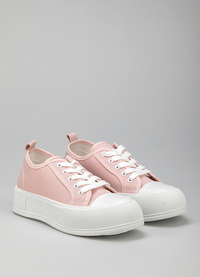 • Женские кеды розового цвета из текстиля от бренда Keddo. Закругленный носок. Открытая шнуровка белого цвета. Петли для подтягивания сзади. Плоская, высокая подошва.