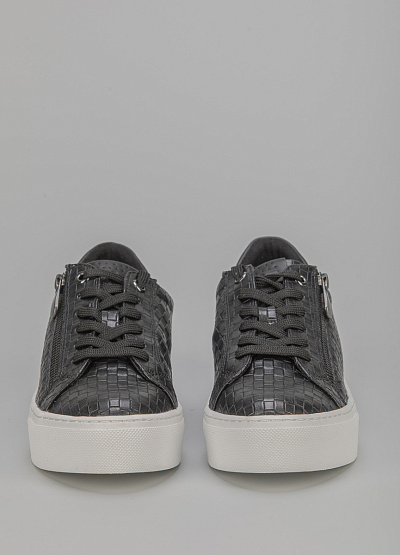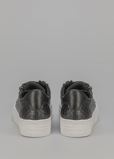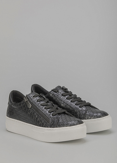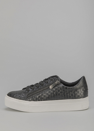 • Женские кеды от бренда Marco Tozzi. Закругленный носок. Открытая шнуровка в тон. Боковой замок. Дизайн в виде множественных переплетений. Массивная плоская подошва.