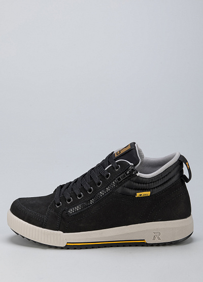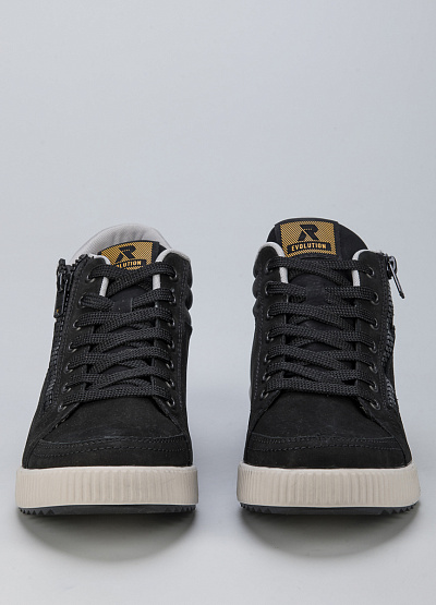 • Женские кеды из натуральной кожи и экокожи от бренда Rieker. Закругленный носок. Открытая шнуровка в тон. Боковая молния. Петли для подтягивания сзади. Плоская рифленая подошва.