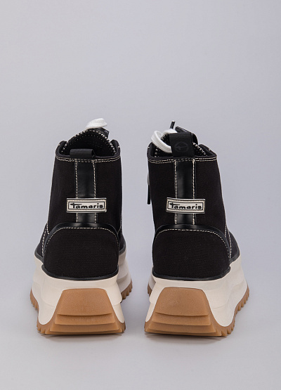 • Женские кеды от бренда Tamaris. Закругленный носок. Завышенный подъем. Открытая шнуровка. Петли для подтягивания сзади. Логотип на пятке. Широкая рифленая подошва.