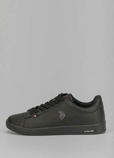 • Женские кеды черного цвета от бренда US Polo. Модель выполнена из экокожи. Закругленный носок, открытая шнуровка в тон. Плоская подошва черного цвета.