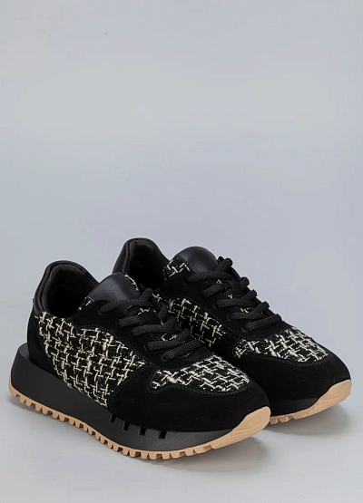 • Женские кроссовки Franco Manatti с оригинальным дизайном, которые удачно сочетают комфорт спортивной обуви и изысканность стильных деталей. Верх выполнен из комбинации текстиля с твидовым узором и вставок из замши, что придает модели элегантность и выделяет её среди классических вариантов. Удобная шнуровка обеспечивает надежную фиксацию стопы, а массивная подошва с рифленым протектором дарит устойчивость и комфорт при ходьбе.