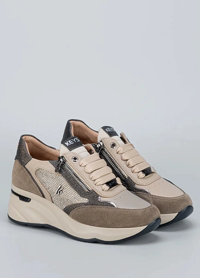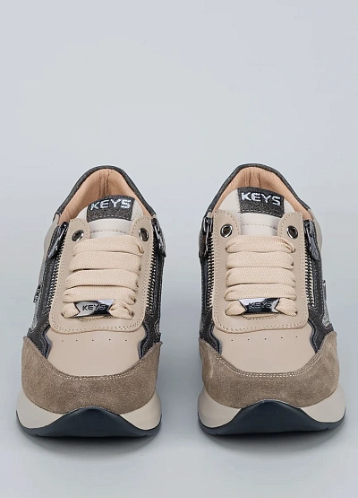 • Женские кроссовки Keys воплощают гармонию спортивного стиля и утончённого блеска. Натуральная замша, гладкая кожа и сверкающие стразы на боковой части кроссовка создают элегантный акцент. Удобная платформа и практичная молния делают эту пару идеальной для женщин в движении.