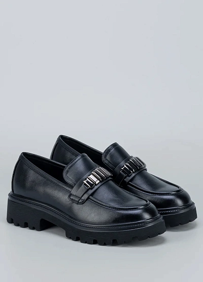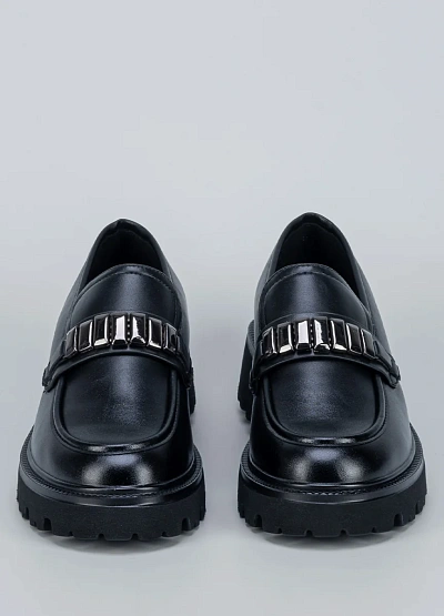 • Классические женские лоферы Keys в черном цвете на массивной подошве — стильный выбор для городского ритма. Металлическая декоративная фурнитура добавляет образу дерзости, а тракторная подошва гарантирует устойчивость. Модель подчёркивает элегантность и уверенность.