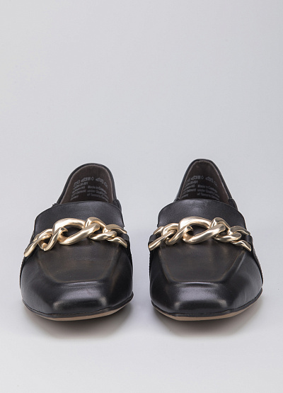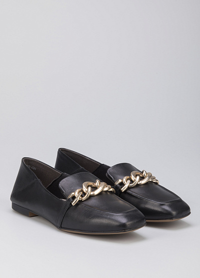 • Женские лоферы из натуральной кожи от бренда Tamaris. Модель с язычком дополнена широкой однотонной перемычкой на подъеме. Декор в виде цепи. Закругленный носок. Тонкая подошва на квадратном каблуке.