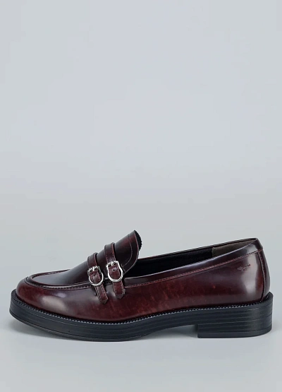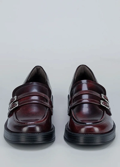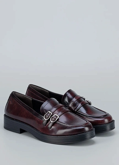 Эта пара в насыщенном бордовом оттенке с двумя аккуратными пряжками станет стильной альтернативой классическим туфлям. Универсальный фасон позволяет сочетать модель и с брюками, и с юбками.