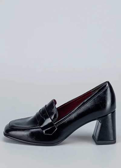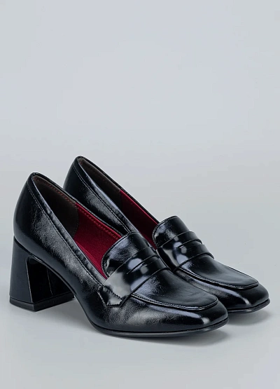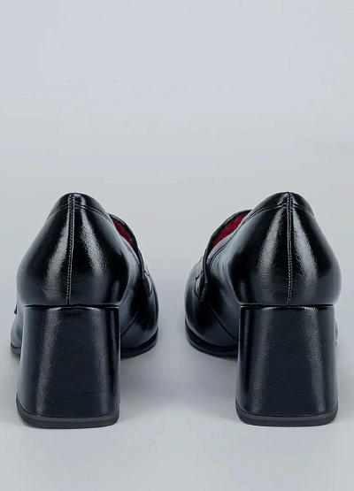 Элегантная пара на устойчивом среднем каблуке сочетает комфорт и строгость. Чёрный лаковый верх и красная внутренняя отделка добавляют дерзости и шарма.