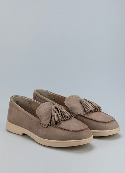 • Женские мокасины из натуральной замши от бренда Tamaris. Модель с язычком. Декор в виде кисточек. Закругленный носок. Мыс оформлен рельефным швом. Плоская подошва с низким каблуком.