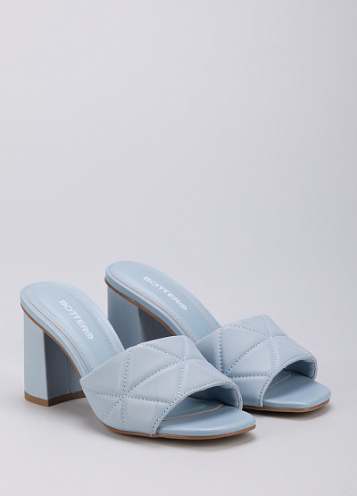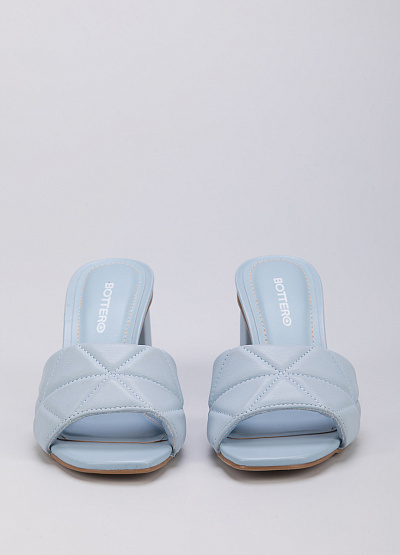 • Мюли голубого цвета из натуральной кожи от бренда Bottero. Модель с широким ремешком. Дизайн в виде ромбов. Каблук средней высоты.