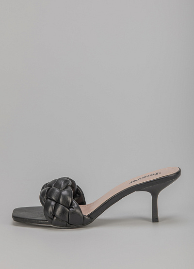 • Мюли из экокожи от бренда Glamour. Модель с квадратным мысом. Широкий плетеный ремешок. Каблук средней высоты.