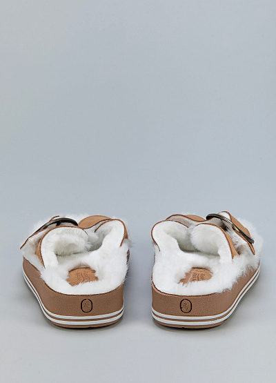 • Пантолеты из натуральной кожи от бренда Fantasy Sandals. Модель с перекрещивающимися ремешками. Застежка-пряжка. Меховая отделка изнутри. Плоская подошва с небольшим подъемом. Принт в полоску вдоль подошвы.
