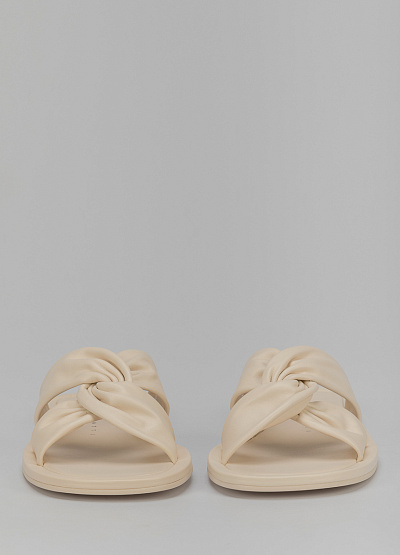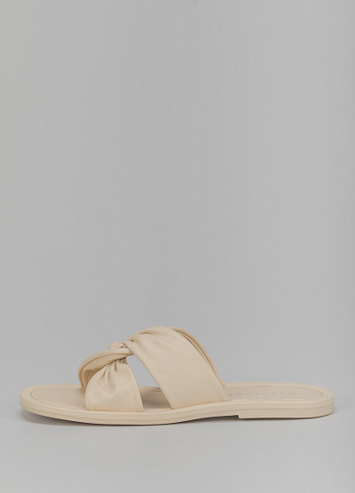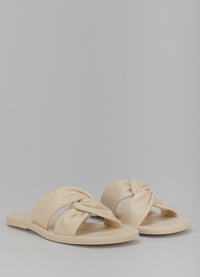 • Пантолеты бежевого цвета из кожи от итальянского бренда Franco Manatti. Модель с открытым носком и перекрещивающимися в середине перемычками. Плоская подошва.