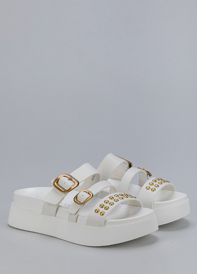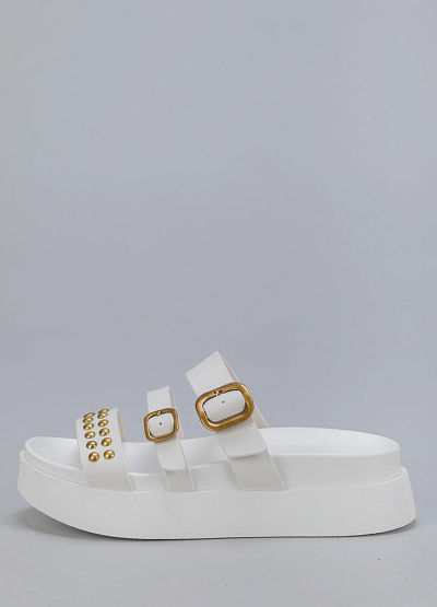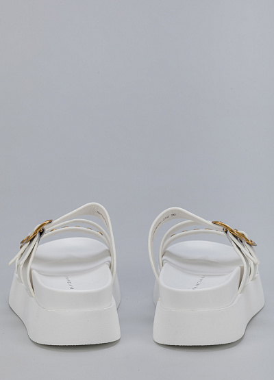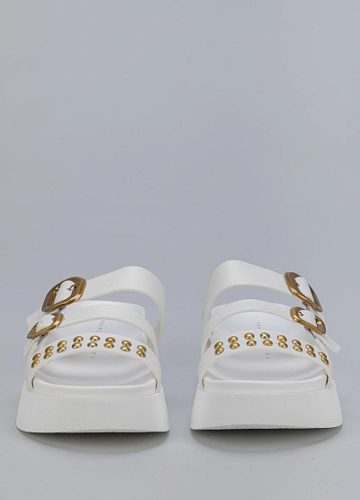 • Женские пантолеты из натуральной кожи от бренда Franco Manatti. Модель с открытым мысом. Два ремешка на пряжке. Один ремешок с декорироваными кнопками. Широкая подошва.