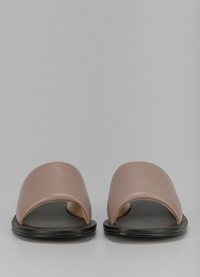 • Пантолеты бежевого цвета из натуральной кожи от итальянского бренда Franco Manatti. Модель с открытым носком. Плоская подошва.