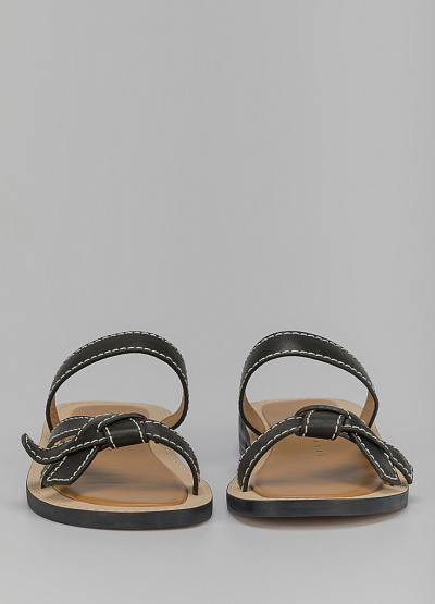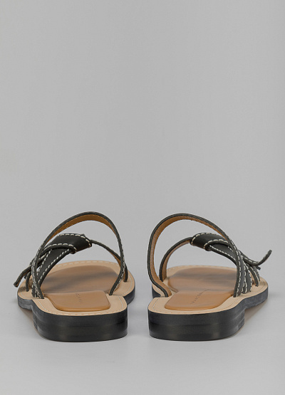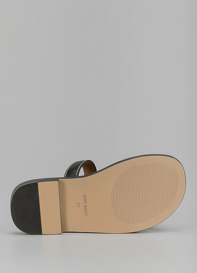 • Пантолеты из кожи черного цвета от итальянского бренда Franco Manatti. Модель дополнена перекрещивающимися перемычками спереди и на подъеме. Декор в виде строчной вышивки. Низкий каблук.
