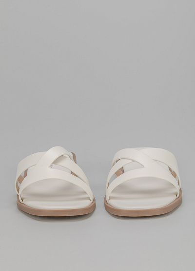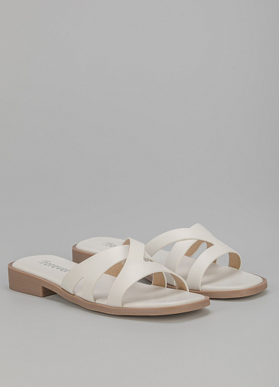 • Пантолеты из экокожи от бренда Glamour. Модель с открытым носком. Перекрещивающиеся перемычки. Плоская подошва с низким каблуком.