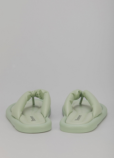 • Женские пантолеты из экокожи от бренда Glamour. Модель с креплением между пальцев, дополнена перемычкой V-формы. Плоская подошва с низким каблуком.