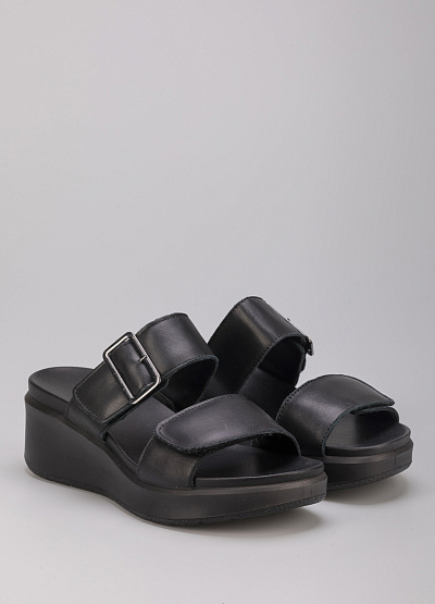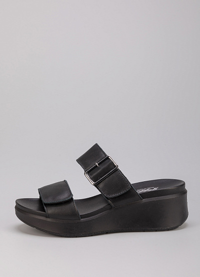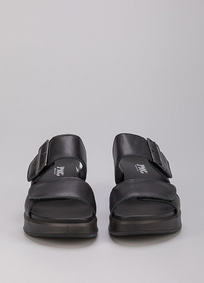 • Пантолеты из натуральной кожи от бренда Imaс. Модель с двумя широкими ремешками. Комбинированные застежки на липучке и пряжка на подъеме. Танкетка.