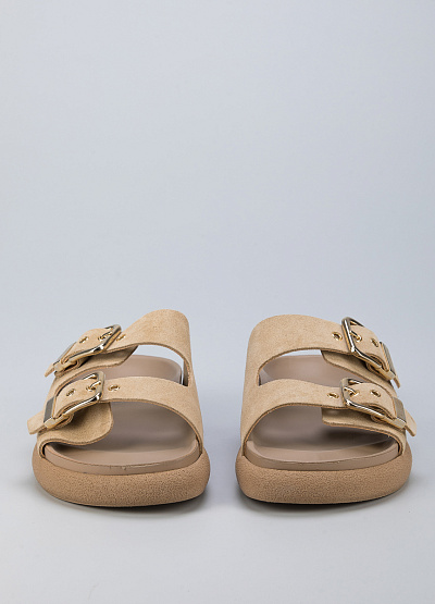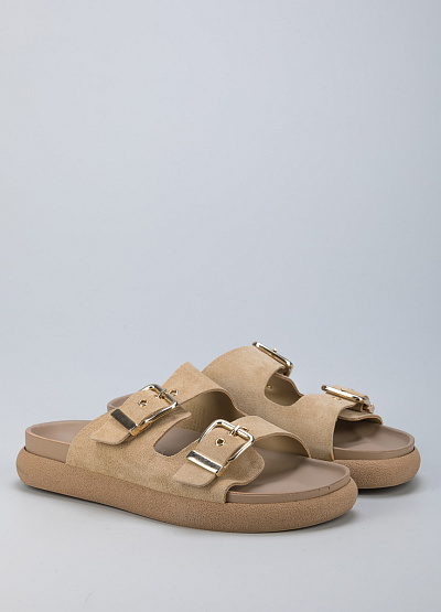 • Пантолеты из замши от бренда Marco Tozzi. Модель на двух ремешках с пряжкой. Плоская подошва с небольшим подъемом.