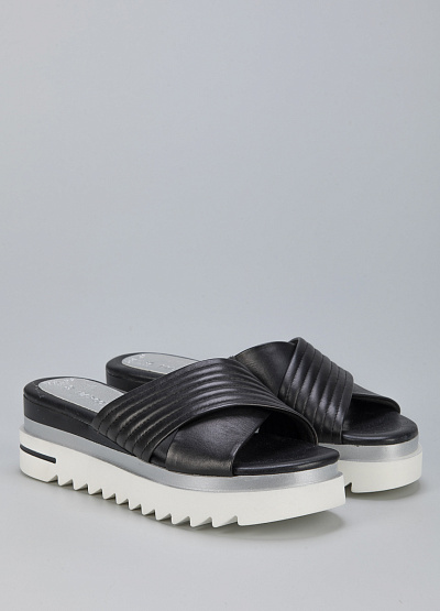 • Пантолеты из натуральной кожи от бренда Marco Tozzi. Модель с открытым носком. Широкие перекрещивающиеся ремешки. Широкая рифленая подошва.