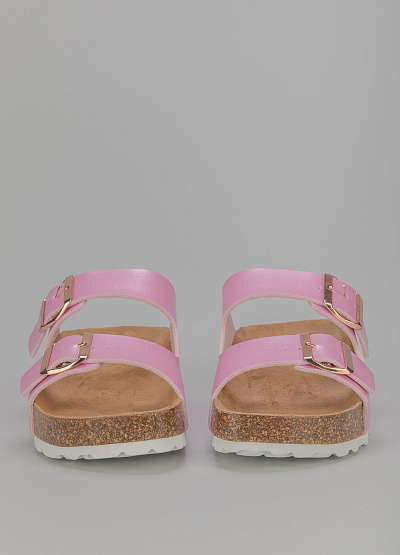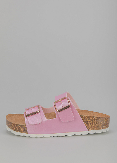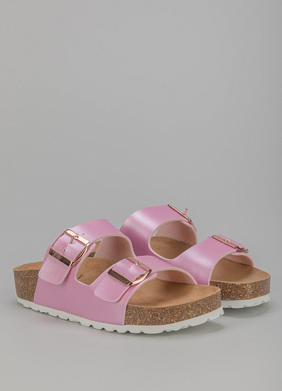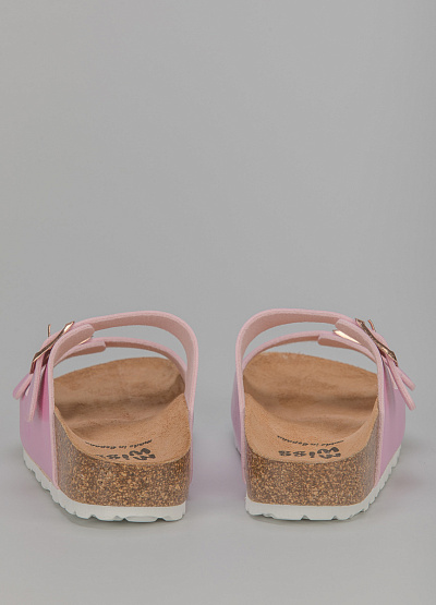 • Пантолеты из экокожи от бренда Miss Wiss. Застежка-пряжка на двух широких ремешках. Плоская пробковая подошва с небольшим подъемом.