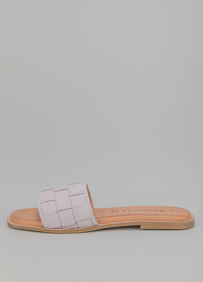 • Пантолеты из натуральной кожи от бренда Tamaris. Модель с открытым носком. Плоская подошва.