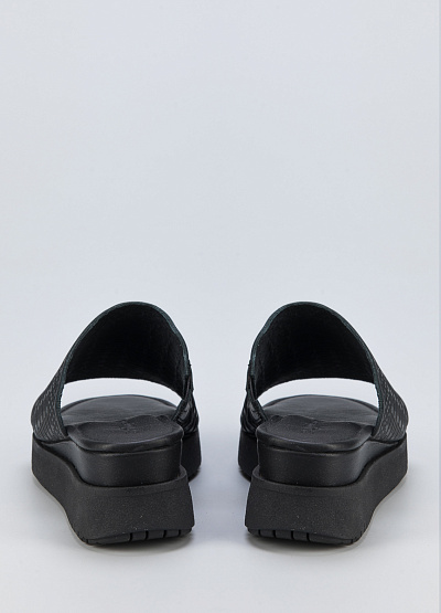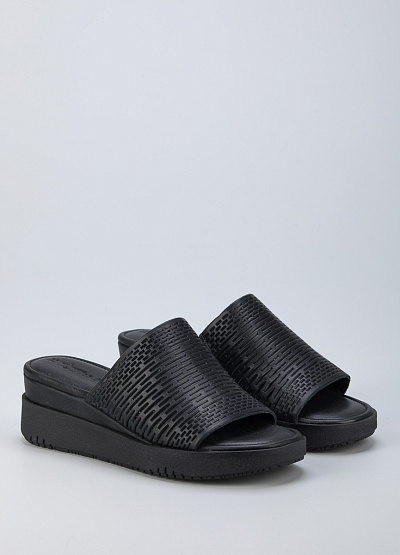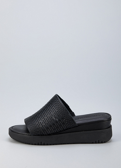 • Пантолеты из натуральной кожи от бренда Tamaris. Модель с открытым носком. Плоская рифленая подошва с танкеткой.