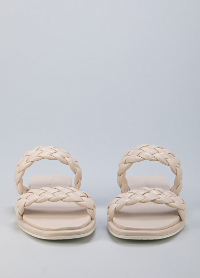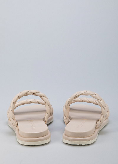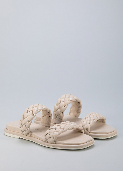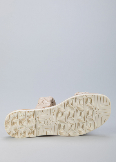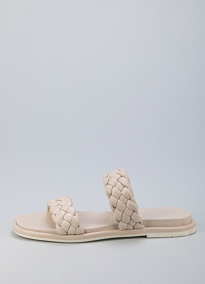 • Пантолеты из натуральной кожи от бренда Tamaris. Модель с двумя плетеными ремешками. Плоская подошва с низким каблуком.