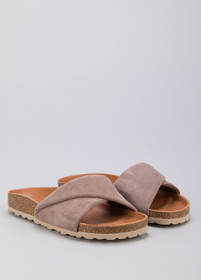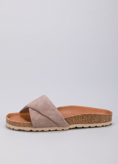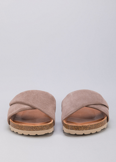 • Пантолеты из замши от испанского бренда Verbenas. Модель с открытым носком. Плоская рифленая подошва.