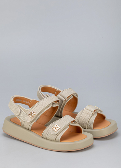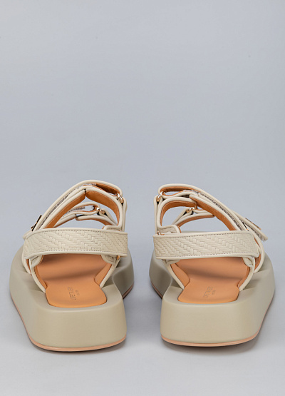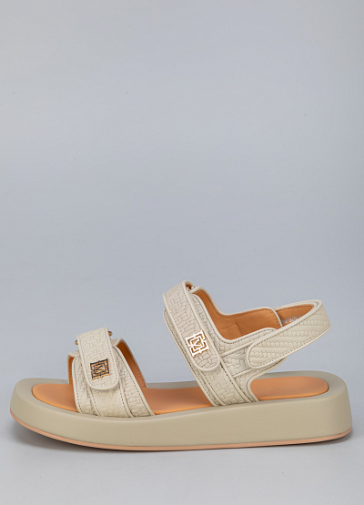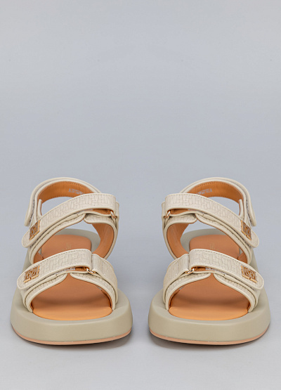 • Женские сандалии бежевого цвета из натуральной кожи от бренда Loretta Very. Модель подойдет для долгой летней прогулки и для повседневной носки. Широкая подошва с широкими объемными ремешками, золотистой фурнитурой и липучками прекрасно сочетаются не только с джинсами, брюками, шортами, но и с легкими и воздушными платьями миди и макси, создавая эффектный стильный контраст.