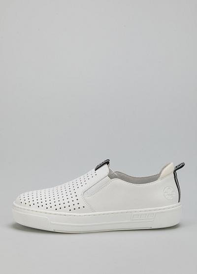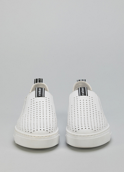 • Женские слипоны от бренда Rieker. Модель с эластичными вставками на подъеме. Закругленный носок. Сквозная перфорация. Петли для подтягивания сзади с логотипом. Ярлык на язычке. Плоская подошва.
