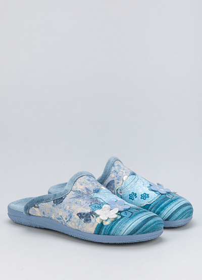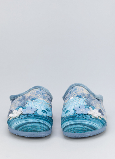 • Женские тапочки от бренда Alberola. Модель с закрытым носком. Принт. Плоская подошва.