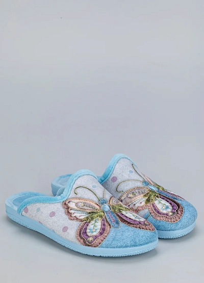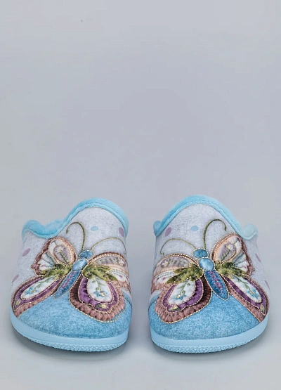 • Домашние тапочки Alberola с вышивкой бабочки — уютный выбор для прохладных вечеров. Модель выполнена в мягких голубых и белых оттенках с декоративной отделкой, создающей сказочное настроение.
