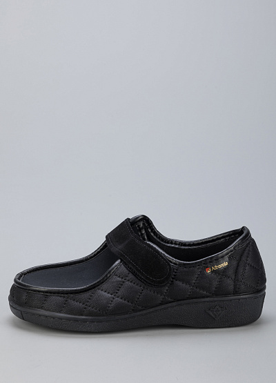 • Женские закрытые тапочки от бренда Alberola. Закругленный носок. Застежка на липучке. Логотип сбоку. Плоская подошва.