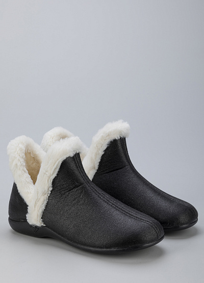 • Женские закрытые тапочки от бренда Alberola. Закругленный носок. Рельефный шов по центру. Края обработаны мехом. Плоская подошва.
