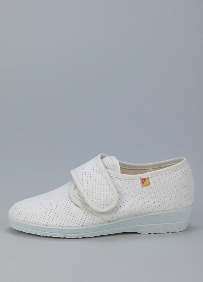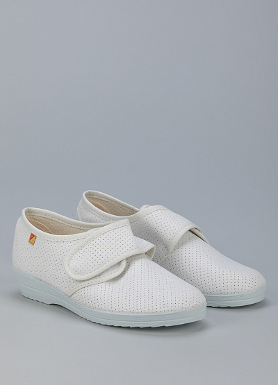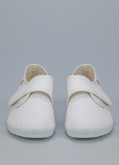• Женские закрытые тапочки из натуральной кожи от бренда Alberola. Застежка-липучка на подъеме. Перфорация. Закругленный носок. Плоская подошва с небольшим подъемом.