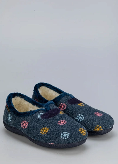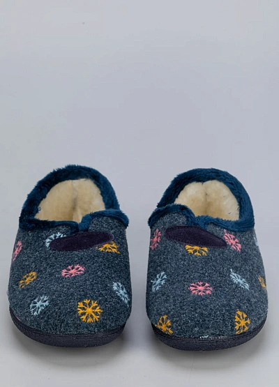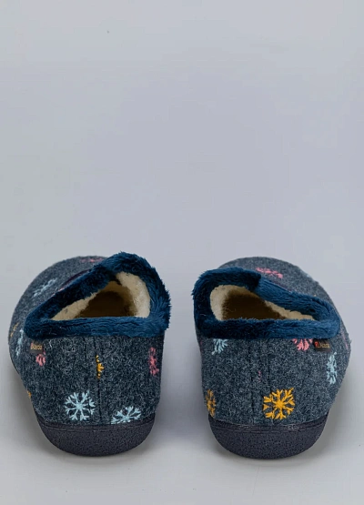 • Женские тёплые тапочки Alberola с ярким зимним принтом "снежинки" — идеальный вариант для уютных вечеров дома. Тапочки выполнены из мягкого фетра с плюшевой отделкой по краю, обеспечивая тепло и комфорт. Полностью закрытая модель надёжно фиксирует ногу и сохраняет тепло даже в самую холодную погоду.