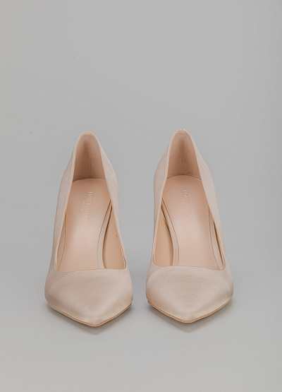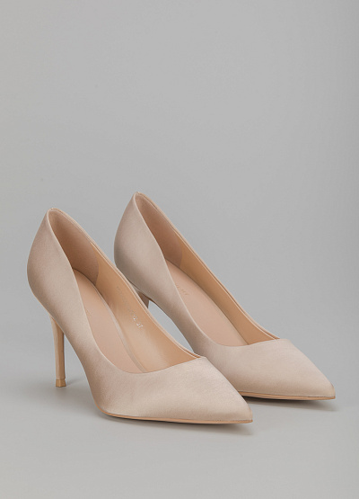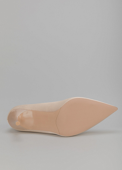 • Туфли бежевого цвета из натуральной кожи от бренда Loretta Very. Лаконичная модель с заостренным носком. Высокий каблук.