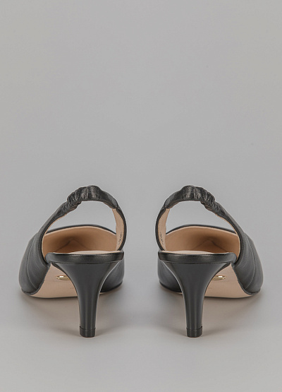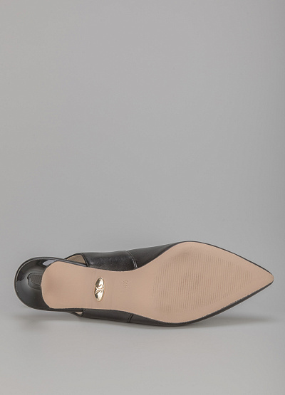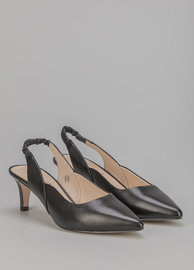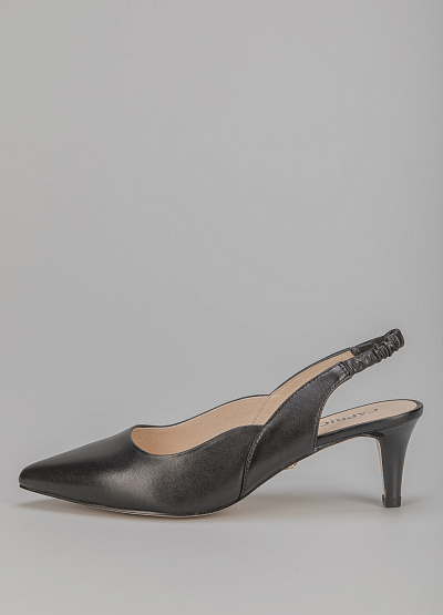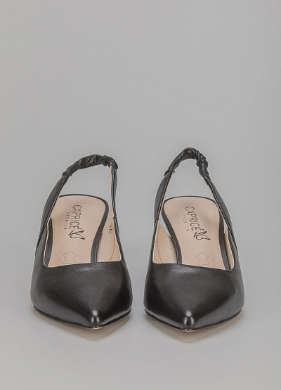 • Туфли черного цвета из натуральной кожи от бренда Caprice. Модель с заостренным носком. Открытая пятка. Эластичная резинка на щиколотке. Устойчивый каблук средней высоты.